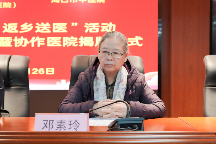 儀式現場氛圍熱烈,首先,周口市中醫院黨委副書記、院長毛國璋致辭。他表示,返鄉名家是周口的驕傲與中醫藥事業的寶貴財富,讓鄉親們在家門口就能享受頂尖中醫藥診療服務;協作醫院及鄧素玲名老中醫藥專家傳承工作室揭牌恰逢周口建設國家中醫藥傳承創新發展試驗區關鍵節點,為醫院人才培養、學科建設、科研攻關搭建了更高平臺。醫院將以此次活動為契機,深耕傳承、突破創新、提質服務,踐行“承古納新、仁和精誠”的院精神,不負重托與期盼,以協作共建成果惠及更多群眾,共譜健康周口建設新篇章。