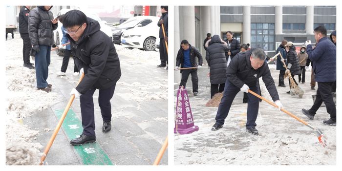 “雪情就是命令,暢通就是責任!”清晨7:30許,手持鐵鍬、掃帚來到院區主干道門診樓前廣場、住院部通道、急診入口、停車場等重點區域,盡管寒風凜冽、積雪沒過腳踝,領導干部們卻毫無懼色,彎腰鏟雪、俯身掃冰,動作嫻熟有力。“急診通道是生命通道,必須優先清理!”領導班子一邊指揮分工,一邊帶頭鏟除結冰路段。
