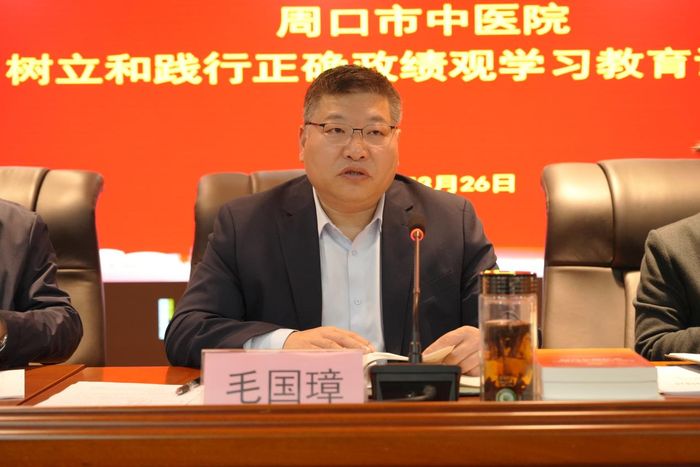 2026年3月26日,周口市中醫院樹立和踐行正確政績觀學習教育讀書班開班儀式在市中醫院1號會議室舉行。院黨委副書記、院長毛國璋同志,院黨委委員、工會主席張紅梅同志,院黨委委員、紀委書記蔡華文同志,院黨委委員、副院長王俊峰同志,院黨委委員、副院長張軍偉同志出席開班儀式,各黨支部書記、行政職能科室負責人參加會議。開班儀式由張紅梅同志主持。