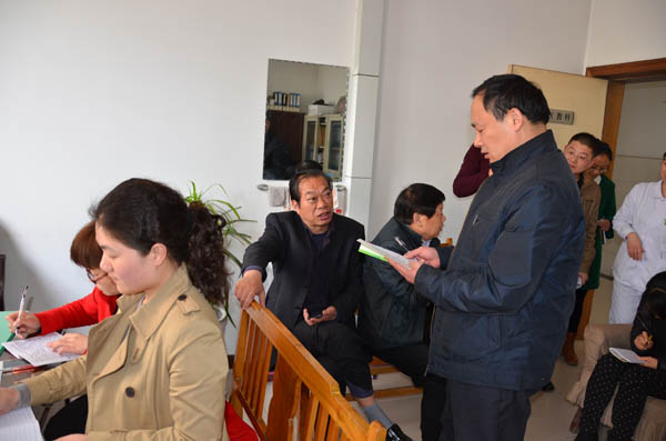 又先后到藥劑支部、外科支部、后勤支部、最后到門診支部,四樓的大廳坐滿人,從剛畢業的年輕醫生,到著名老專家,他們在百忙中抽出時間聚在一起學習,孫俊主任給予高度評價:參加學習人多面廣,學習態度認真,學習資料人手一份,學習有計劃、有內容。與門診支部楊主任進行了溝通,最后指出,教育實踐活動要著力把握:學習教育、聽取意見,查擺問題、開展批評,整改落實、建章立制三個環節,深入開展理想信念教育,黨性、黨風、黨紀教育,道德品行教育,突出學習焦裕祿精神,把三個環節逐步落實到臨床工作中,怎樣為病人服務,有無對待患者態度冷漠,小病大治,收取紅包、回扣等,問題從內心深處觸及靈魂去自查,要堅持以病人為中心,結合我院開展的三好一滿意活動,操心想事,用心干事,盡心成事,不等不靠,邊學邊改,把教育活動扎實開展下去。