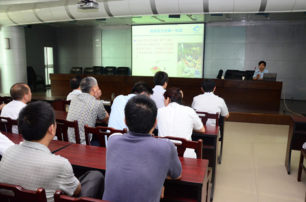 2014年6月17日下午,周口市中醫院特聘新鄉醫學院第一臨床學院郭明好副院長給全體醫生及全員中層、護理組長在六樓會議室講課,題目為“給臨床醫生經典一句話”,大會由副院長史衛東主持,副院長魯恒心出席會議。