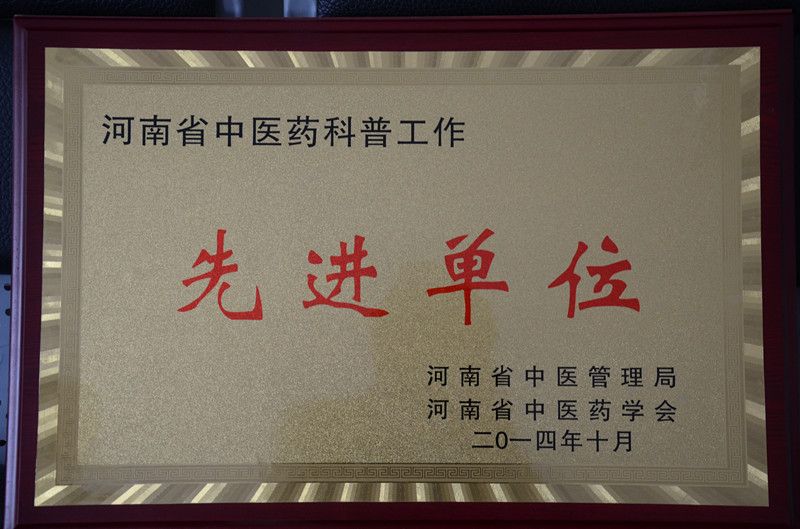 2014年10月24--26日,在開封市召開的2014年河南省中醫藥文化建設與科學普及及學術年會上,我院榮獲:河南省中醫藥科普工作先進單位;河南省中醫藥文化建設工作先進單位;我院制劑中心主任郭國富同志榮獲河南省中醫藥科普工作先進個人榮譽稱號。作為河南省中醫藥文化建設與科普工作的先進單位,以這次中醫藥文化建設與科學科普及學術年會為契機,在醫院內部文化建設方面,我院要不斷完善醫院的管理文化、養生文化、家文化等系列工作;建立中醫藥科普宣傳工作的長效機制,面向公眾開展中醫藥科普宣教活動,積極推進中醫藥科普工作的社會化、群眾化。(宣傳科)