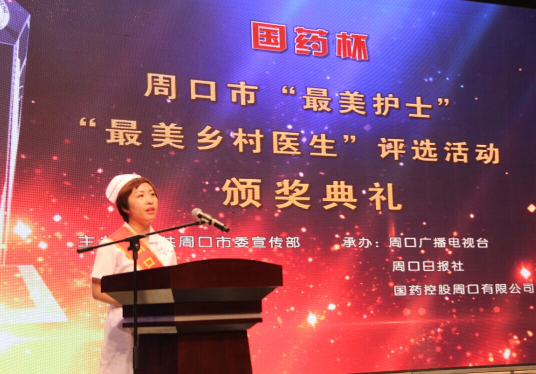 5月12日上午9點,陽光明媚,周口市中醫院的護士們帶著喜悅的心情來到周口廣電中心參加了由市委宣傳部、市文明辦和市衛生局聯合主辦的“國藥杯”周口市“最美護士”“最美醫生”評選活動頒獎典禮。周口市中醫院共參加護士40名,由護理部張紅梅主任帶隊。護士們穿著整潔的護士服,面帶微笑,儀表端莊,排著整齊的隊伍有序的坐在我院的方陣中,她們受到市委領導、及其他參會代表的夸獎。