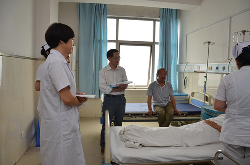 根據省中醫管理局“三級中醫醫院持續改進活動”安排,由南陽市中醫院副院長趙青春為組長的檢查專家組一行3人,于5月26日上午對我院進行了“三級中醫醫院持續改進”省級檢查評估,市衛生局副局長張燕、市衛生局科教科科長蔣文參加了匯報會。