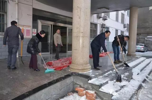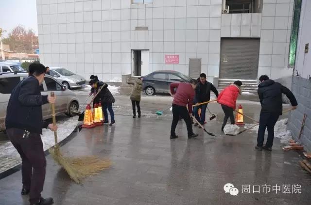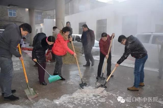為保證患者就醫安全和醫護人員工作方便。25日下午,我院積極組織干部職工,清掃路面積雪。大家拿起鐵鍬、掃帚,冒著嚴寒,清掃院內積雪。盡管寒風刺骨,但大家不顧衣物被雪水、泥水打濕弄臟,都干得熱火朝天。