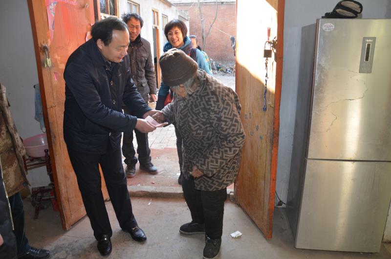 在困難老人王陳氏家里,孫俊認真詢問老人的身體狀況、生活情況和家庭成員的基本情況,作了全面詳細的了解,并叮囑她一定要保重身體。送去米、面、糧油,并把慰問金遞給老人手里時,老人感動地緊緊握著孫俊的手,激動地說“謝謝,感謝周口市中醫院對俺們的關心”。就這樣,每到一處,慰問團親切地與困難群眾進行交談,噓寒問暖,詳細地詢問他們的生活情況,鼓勵他們樹立生活信心,勇敢地面對困難,并代表醫院祝愿他們新春愉快、家庭幸福。