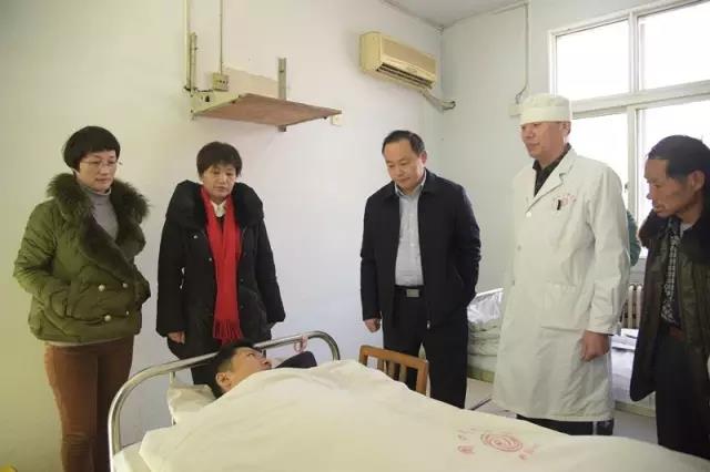 2月20日上午,工會主席孫俊帶領黨辦、合作部、農合辦、宣傳科等相關科室人員帶著禮品來到病房看望了患者吳磊。與患者親切交談,仔細詢問患者的病情及治療情況,叮囑患者安心養病,并祝福他早日康復。