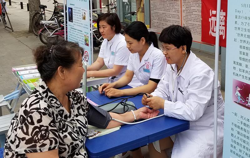 二、開展義診宣傳:周口市中醫院在五一廣場懸掛了醒目的大型橫幅宣傳標語。并派出了由社區、肺病科、宣傳科等組成的精英骨干小隊進行義診宣傳。活動內容主要有社會宣傳、技術咨詢、義務測量血壓、散發宣傳材料等宣傳活動。