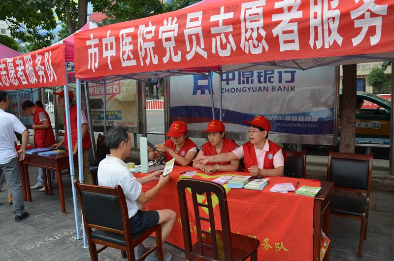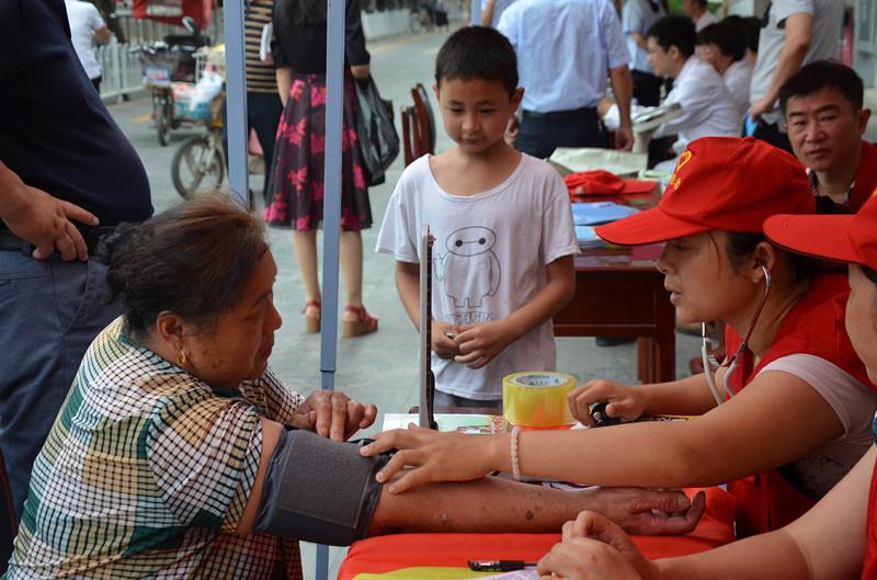 周口市中醫院派出了由社區主任郁燕帶隊,各個科室骨干組成的志愿者服務隊。為群眾進行血壓測量、業務咨詢、心肺物理檢查、體重測量等方面的醫療服務。