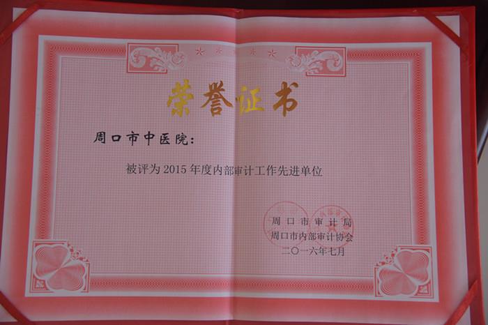 周口市中醫院此次榮獲了2015年度內部審計工作先進單位。