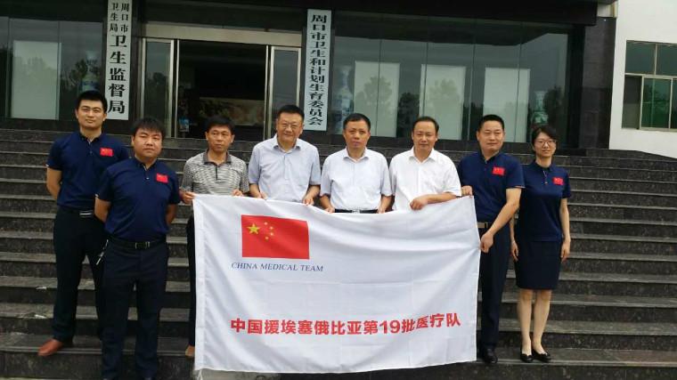 8月9日上午,中國援埃塞俄比亞第19批醫療隊歡送會在周口市衛計委七樓舉行,周口市人民政府副市長張廣東,周口市衛計委主任劉炯,市中醫院黨委書記劉廣明,副院長史衛東,院黨委委員、工會主席孫俊到場參加。