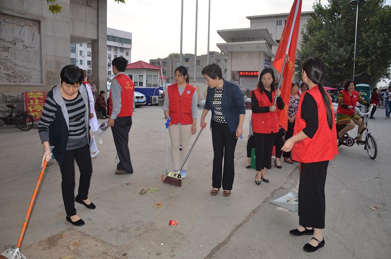 9月30日下午,周口市中醫(yī)院第二十八次志愿者服務(wù)活動(dòng)按時(shí)舉行,來(lái)至全院24各科室共計(jì)24人參加了此次活動(dòng)。志愿者分為兩組,一組在醫(yī)院門前打掃衛(wèi)生,一組在分包路段芙蓉路進(jìn)行衛(wèi)生保潔,并發(fā)放河南省文明城市調(diào)查問(wèn)卷。他們清理小廣告,清理路邊垃圾死角,路邊商販?zhǔn)艿接绊?,主?dòng)打掃各自門前衛(wèi)生,路過(guò)的一位小學(xué)生細(xì)聲細(xì)語(yǔ)地說(shuō),這是中醫(yī)院在打掃衛(wèi)生,讓街道更干凈,周口更文明。