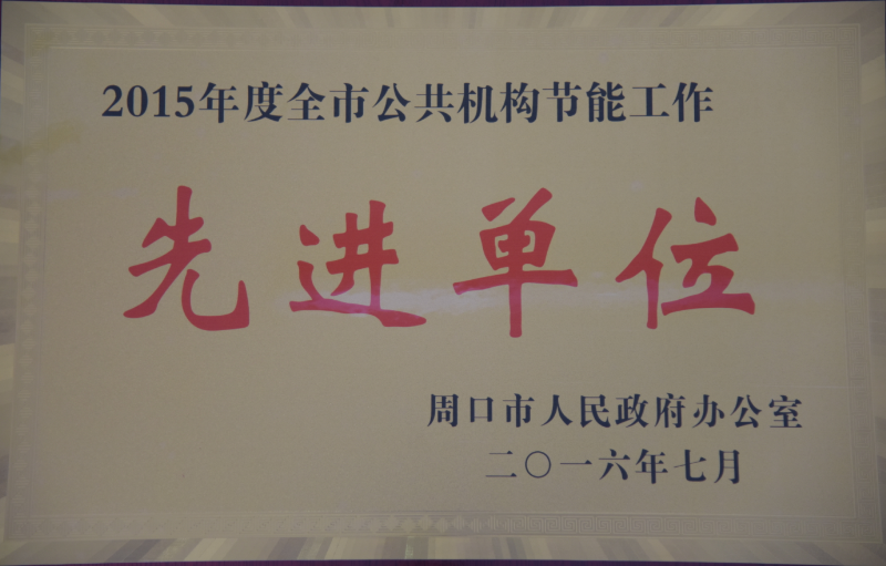 日前,周口市人民政府召開表彰大會,對2015年度全市公共機構節能工作中涌現出的先進單位及先進個人進行通報表彰,我院榜上有名,榮獲“2015年度全市公共機構節能工作先進單位”稱號。