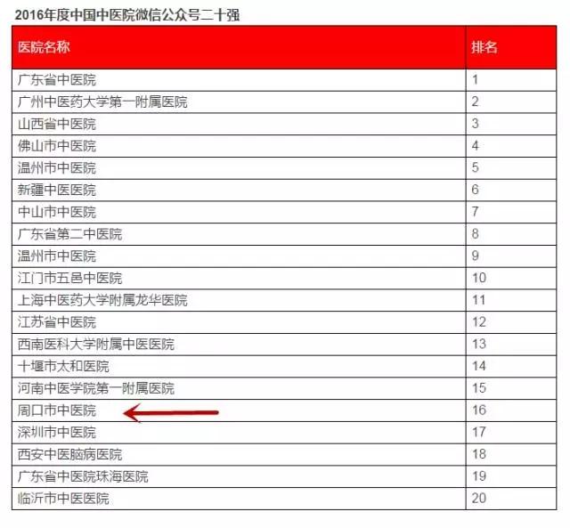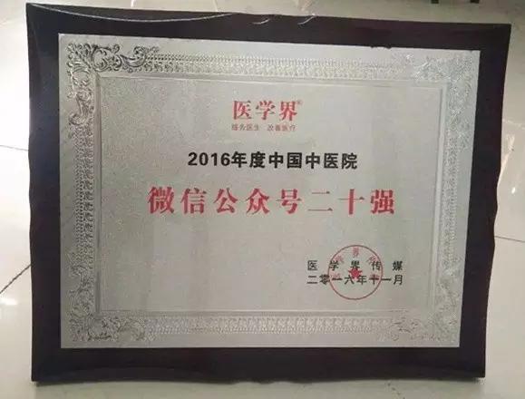 我院榮獲2016年度“中國中醫院微信公眾號二十強”