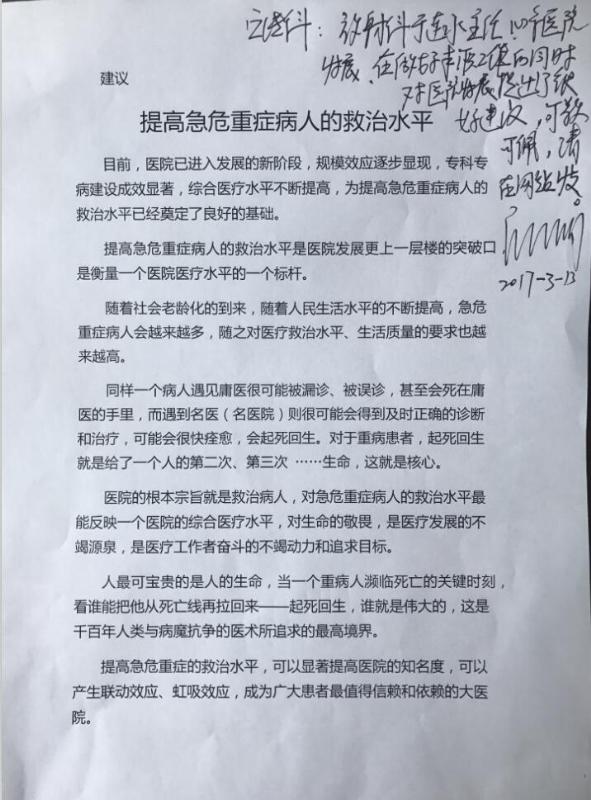 來自本院一位中層領導的建議