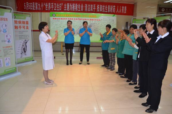 活動于5月5日上午7:30在1號樓一樓大廳如時進行,除懸掛宣傳條幅、立宣傳展板和在大屏幕上滾動播出各科室手衛生宣傳照片外,本次活動共分三項內容: